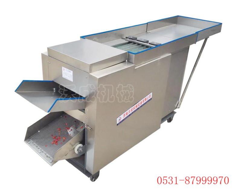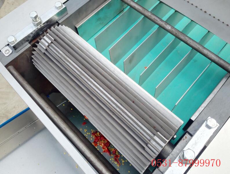 高效自动切辣椒段机 内有振动筛,可自动将辣椒和辣椒籽分离,常规切段规格为8mm,10mm,12mm, 15mm, 20mm。